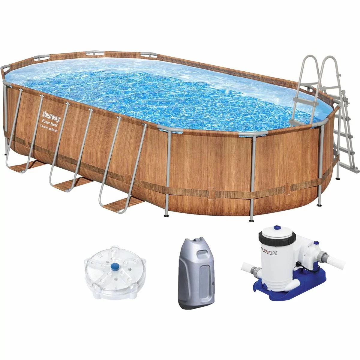 - 56719 Каркасний басейн Bestway з гідромасажем і підсвіткою, 610 х 366 х 122 см (9 463 л/ч, сходи, LED світильник)