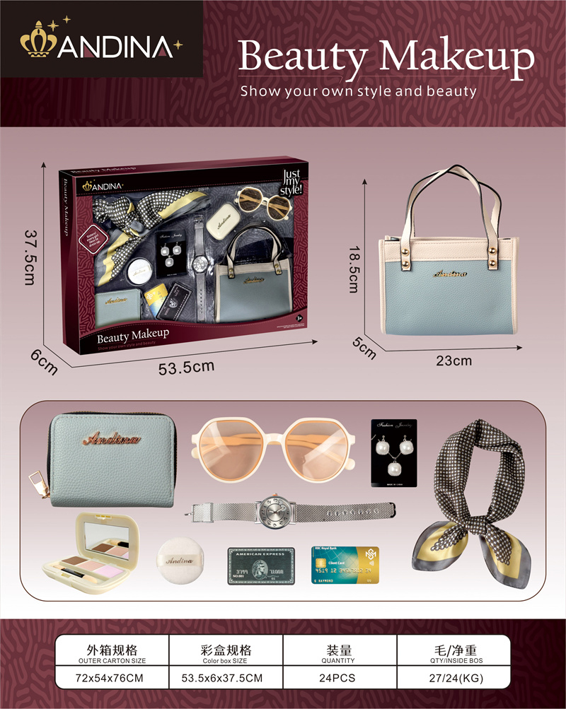 - G560427-676-1 Дитячий ігровий набір аксесуарів ANDINA «Beauty Makeup» сумочка, хустинка, сережки, окуляри, пудра, тіні