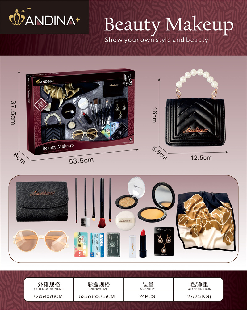 - G560429-676-3 Дитячий ігровий набір аксесуарів ANDINA «Beauty Makeup» сумочка, хустинка, помада, сережки, туш, окуляри