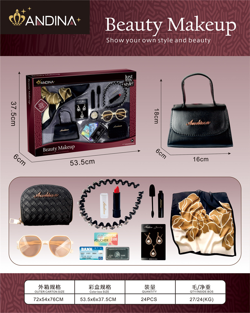 - G560431-676-5 Дитячий ігровий набір аксесуарів «Beauty Makeup» сумочка, косметичка, хустинка, помада, сережки, туш