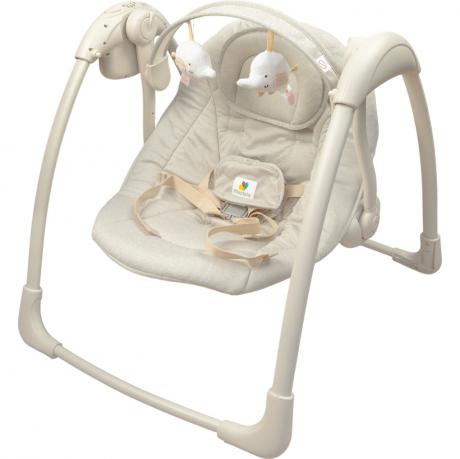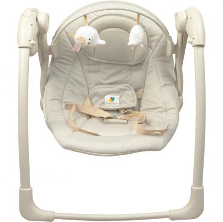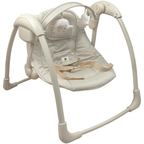 Дитячий музичний шезлонг-качалка для дітей 3–11 кг має розмір рами у зібраному вигляді 66×57×63 см, розмір гамака — 65×45 см. Оснащений 7 мелодіями та функцією вібрації, 5 швидкостями гойдання і 3 режимами таймера. Передбачена поворотна ігрова дуга, знімний підголівник і ремені безпеки з плечовим фіксатором (п’ятиточковий ремінь). З боків розташовані кнопки блокування гойдання. Шезлонг легко складається для зберігання та транспортування. Працює від 4-х батарейок типу C/LR14 (не входять до комплекту) та від USB-кабелю 1,5 м (входить у комплект). Також є інструкція англійською мовою. Підходить для дому та подорожей. Товар вигідний для оптових магазинів і підходить для роздрібного продажу.