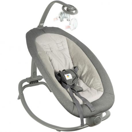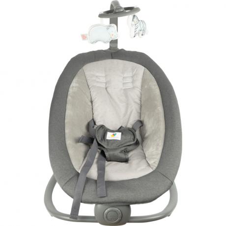 Дитячий шезлонг-качалка Mastela призначений для дітей вагою 3–9 кг. Розмір у зібраному вигляді — 74×50×70 см, довжина гамака — 74 см, висота — 45 см. Конструкція дозволяє малюку самостійно гойдатися, передбачена фіксація в нерухомому положенні. Оснащений знімною панеллю з іграшками, функцією заспокійливої вібрації та кількома мелодіями з регулюванням гучності. Працює від 2 батарейок типу AA/LR6. Компактно складається для зберігання та транспортування, розмір коробки — 59×29×10 см. Товар вигідний для оптових магазинів і підходить для роздрібного продажу.