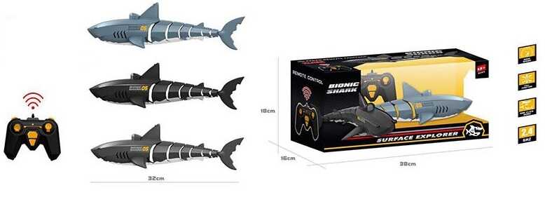 Акула на радіокеруванні 208001 (24) 3 види, плаває у воді, акумулятор 3.7 A, пульт 2.4 Ghz, викрутка зарядка, інструкція, запасні вентилі, в коробці