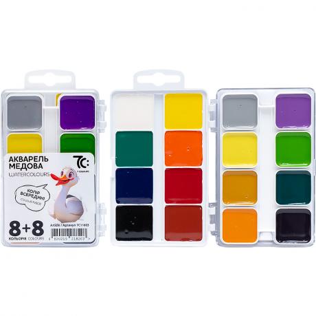 Акварель медова 16 кольорів, б/к, пластик 11,5*7,5см, 7С: 7C11603