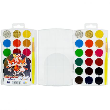 - Акварель медова 18 кольорів, золото+срібло з пензликом RUDIX 811810