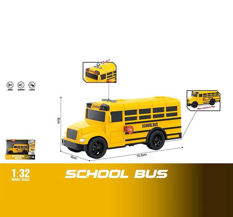 - Автобус WY 1128 A (96) "Шкільний автобус", інерція, світло, звук, масштаб 1:32, гумові колеса, в коробці