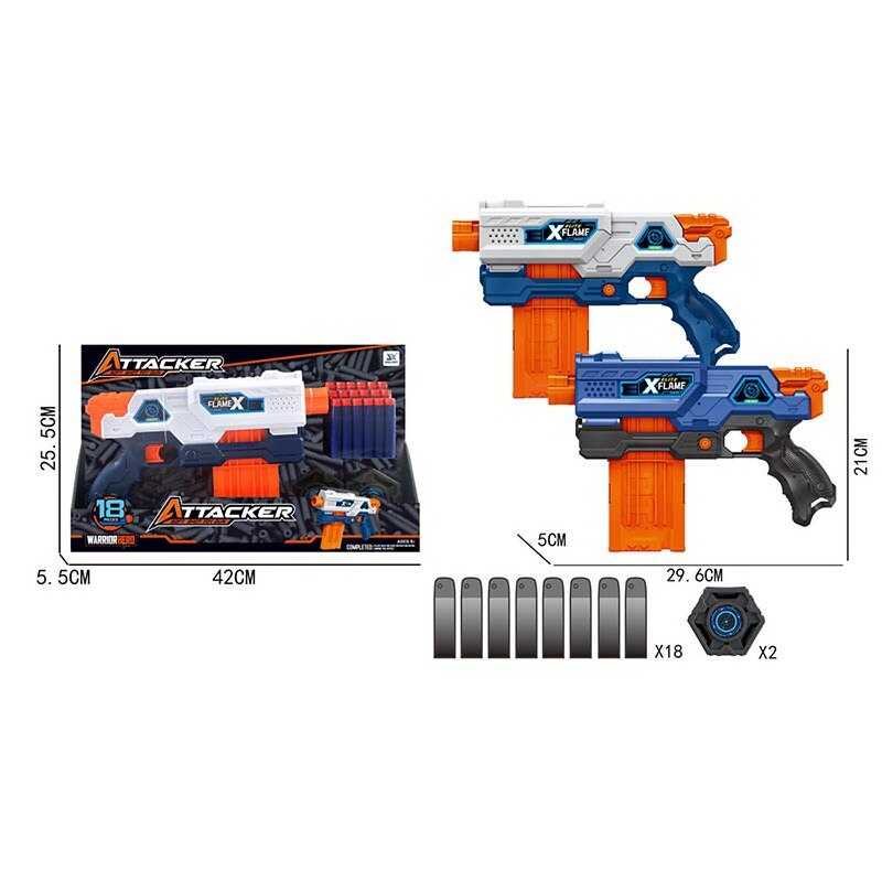 - Автомат JLX 7257 (48/2) 2 кольори, механічний принцип роботи, 18 м’яких куль, 2 мішені, в коробці