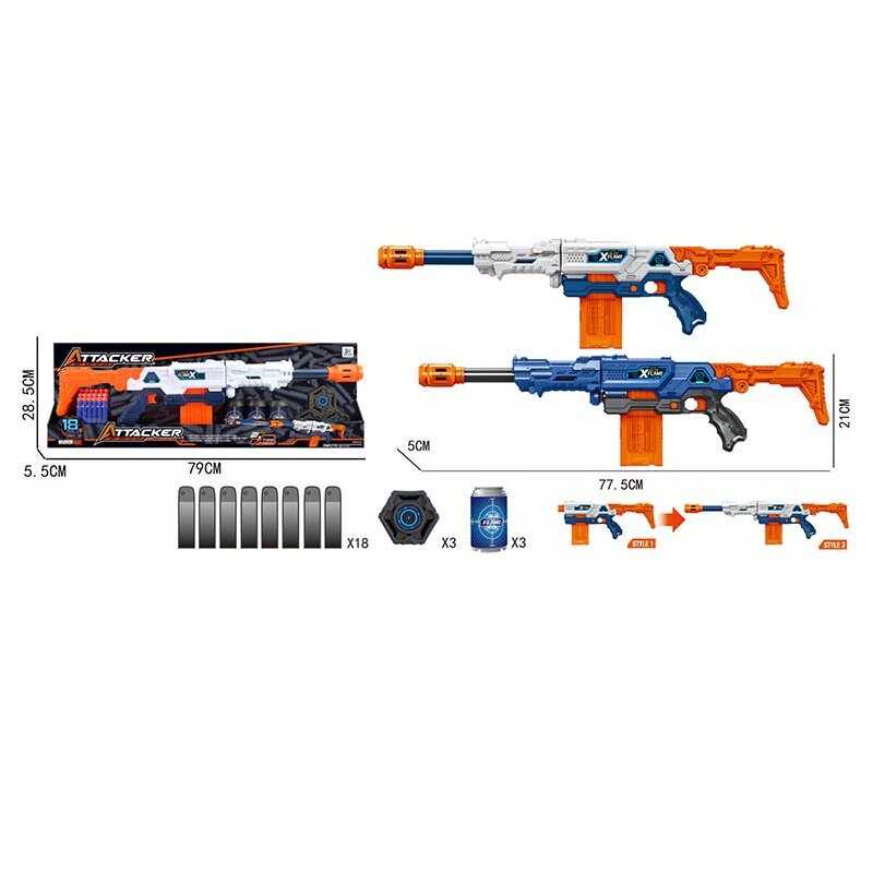 - Автомат JLX 7259 (24/2) 2 кольори, механічний принцип роботи, 18 м’яких куль, 6 мішеней, в коробці