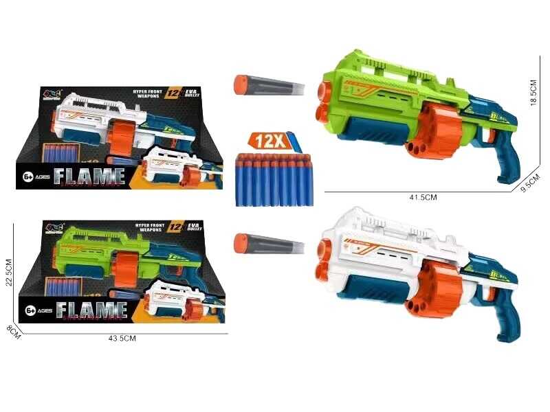 - Автомат Z 1163-1 (24/2) 2 кольори, стріляє м’якими патронами, механічний принцип роботи, 12 патронів, в коробці