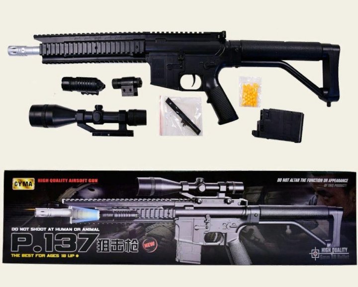 - Автомат на кульках P137 у комплекті з лазерним прицілом та ліхтариком