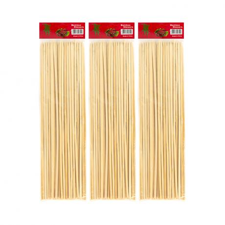 Бамбукові палички для барбекю та гриля довжиною 30 см і діаметром 4 мм призначені для приготування шашликів, м’яса, овочів, риби та інших страв на мангалі, грилі або в духовці. Збільшена довжина та діаметр забезпечують підвищену міцність і зручність під час приготування щільних і важких продуктів, а також безпечну відстань від жару. Палички виготовлені з натурального бамбука, екологічні, не мають стороннього запаху та не впливають на смак страв. Підходять для одноразового використання, сервірування, канапе та пікніків. Упаковка містить 50 штук (можлива похибка ±10%). Розмір упаковки — 9×35 см, зручно для зберігання, транспортування та оптових продажів.