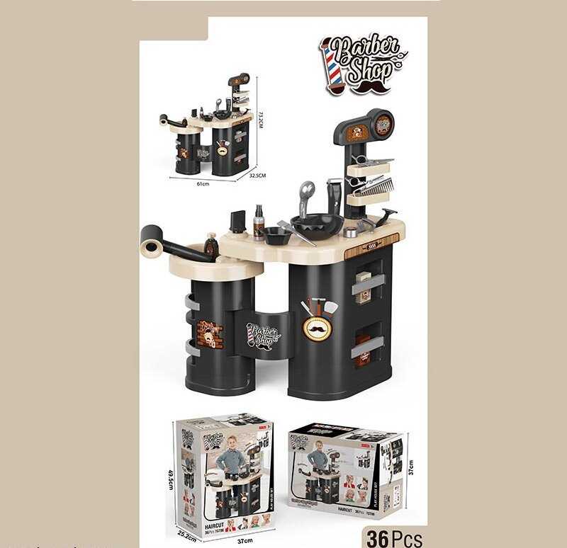 - Барбершоп 7 GT 06 (6) 34 елементи, висота 73 см, функціональний фен та машинка, ножиці, тример, станок для гоління, гребінець, флакончики з «засобами», в коробці
