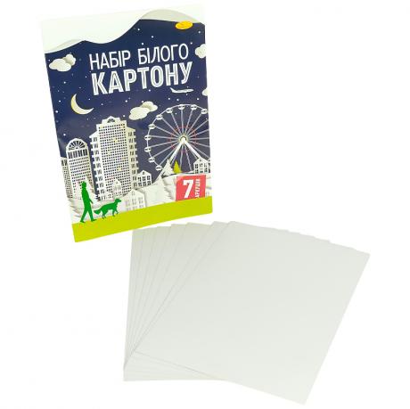 Білий односторонній картон формату А4 призначений для творчості, аплікацій та офісних завдань. Розмір — 200×295 мм, кількість аркушів — 7, поверхня — крейдована, друк — офсетний. Матеріал щільний, добре тримає форму, стійкий до згинання та розривів, зручний для вирізання і склеювання. Однорідний білий колір підходить для малювання, декорування та створення різних виробів, зручний для використання у школі, вдома та в офісі. Ціна вказана за 1 одиницю товару. Товар вигідний для оптових магазинів і підходить для роздрібного продажу.
