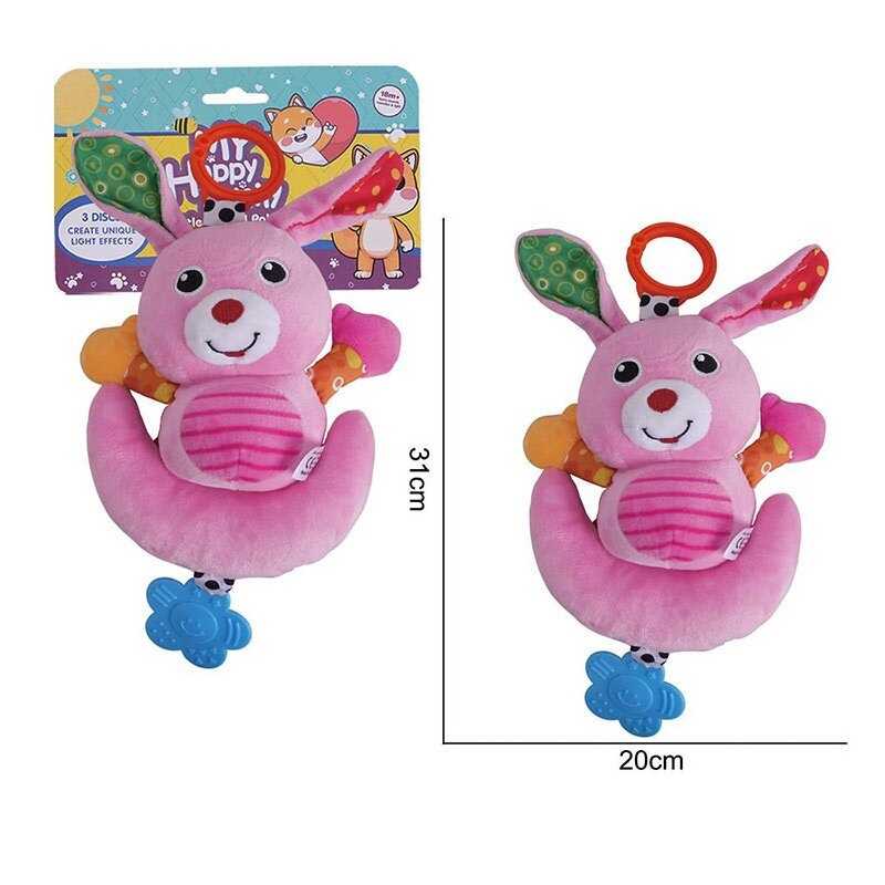 Брязкальце CH 6045-20 (60/2) “Кролик”, текстильне, заводний механізм, мелодія, прорізувач, шелесткі елементи, кріплення для підвішування, в пакеті