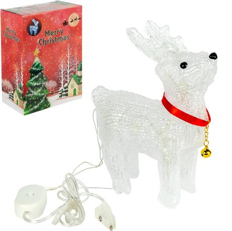 Світлова фігурка «Олень з дзвіночком» — стильна новорічна прикраса, що створює атмосферу затишку та чарівності. Виготовлена з прозорого матеріалу з ефектом льоду. Оснащена шнуром живлення довжиною 180 см з вимикачем. Світловий олень ідеально підходить для декору дому, офісу або вітрини. Розмір виробу — 18×23×8 см. Постачається у подарунковій коробці з зимовим дизайном розміром 18,5×9,5×24,5 см.