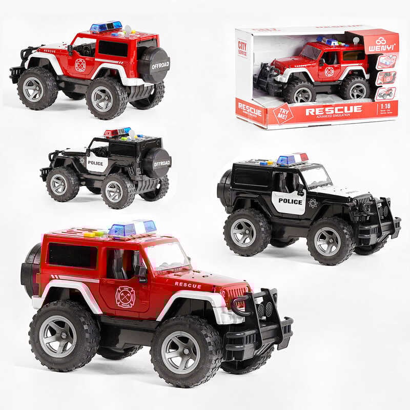 - Джип WY 392 A/B (24) "Міська служба", 2 види, підсвічування, звуки, металопластик, відкриваються двері, в коробці