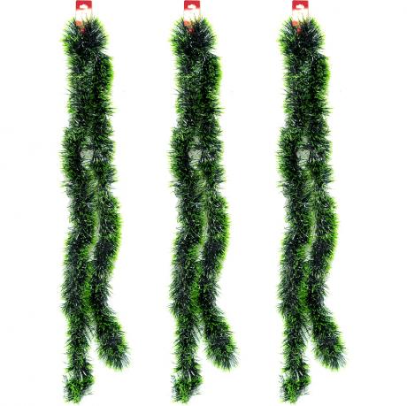 Новорічний дощик довжиною 2 метри та діаметром 11 см — яскрава прикраса для ялинки, вітрини чи святкового інтер’єру. Мішура виконана в насиченому зеленому кольорі, а кінчики мають світліший зелений відтінок, що створює плавний перехід і додає об’єму. Прикраса легко кріпиться, не осипається та може використовуватись багаторазово. Підходить для декору дому, офісу чи новорічних заходів.
