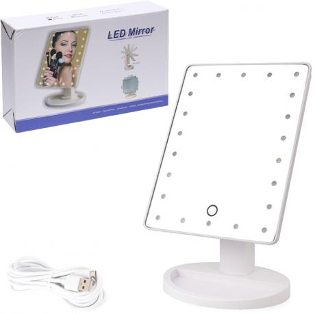 Створіть ідеальні умови для макіяжу та догляду за шкірою з цим стильним і функціональним дзеркалом з LED-підсвіткою. Оснащене 22 яскравими світлодіодами, дзеркало забезпечує рівномірне освітлення, що робить процес макіяжу зручним навіть за недостатньої кількості природного світла. Воно працює як від мережі 220В, так і від батарейок (4 шт. типу АА, не входять до комплекту), що робить його універсальним і мобільним. У комплекті є USB-кабель для підключення до адаптера чи комп'ютера.