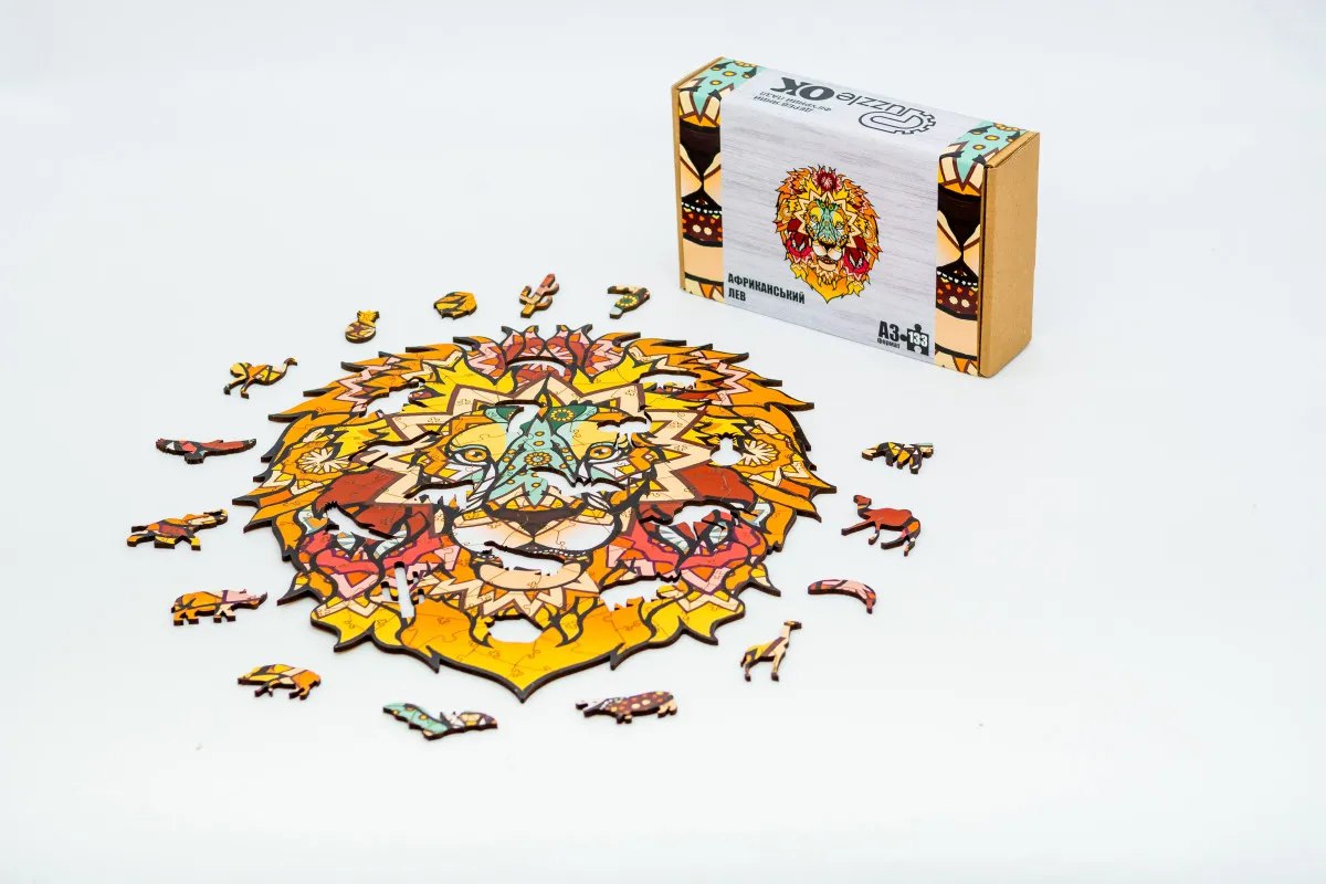 - Фігурний дерев'яний пазл Африканський Лев A3 в картонній упаковці 133 деталі 00720