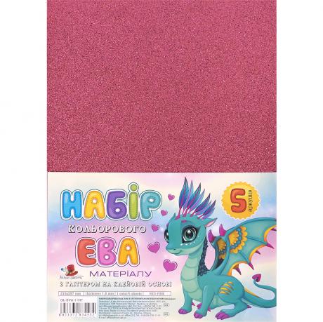 - Фоаміран червоно-рожевий з гліттером клейова основа GL-EVA-1-037 А4, 21х29,7см, 1.6 мм, 5 лист. ФЦ014/20