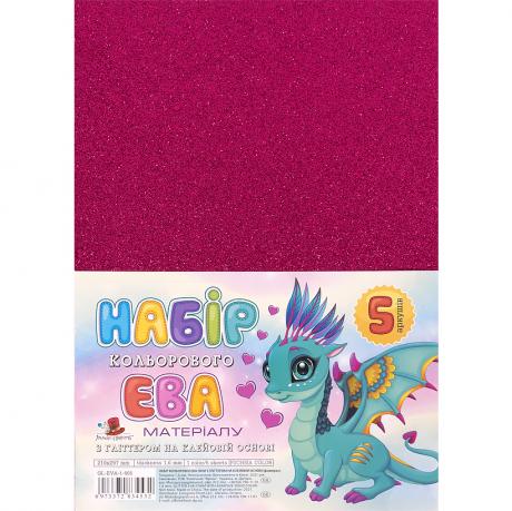 - Фоаміран фуксія з гліттером клейова основа GL-EVA-1-ADH-005 А4, 21х29,7см, 1.6 мм, 5 лист. ФЦ014/6