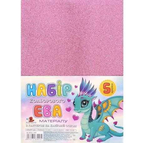 - Фоаміран рожевий з гліттером клейова основа GL-EVA-1-ADH-006 А4, 21х29,7см, 1.6 мм, 5 лист. ФЦ014/7