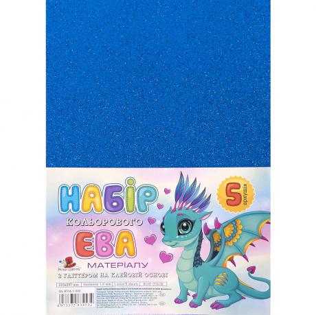 - Фоаміран синій з гліттером клейова основа GL-EVA-1-ADH-022 А4, 21х29,7см, 1.6 мм, 5 лист. ФЦ014/10
