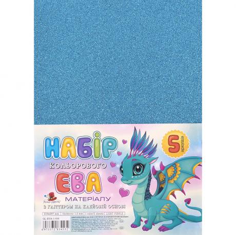 - Фоаміран світло-блакитний з гліттером клейова основа GL-EVA-1-ADH-010 А4, 21х29,7см, 1.6 мм, 5 лист. ФЦ014/16