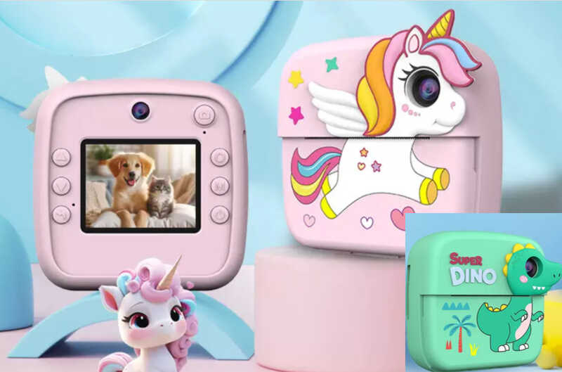 Фотоапарат-принтер C 72970 (30) 2 кольори, фронтальна камера, type-C, роз’єм для TF-карти, фото, відео, плеєр, 5 ігор, чорно-білий друк, рулон термопаперу, ремінець, в коробці