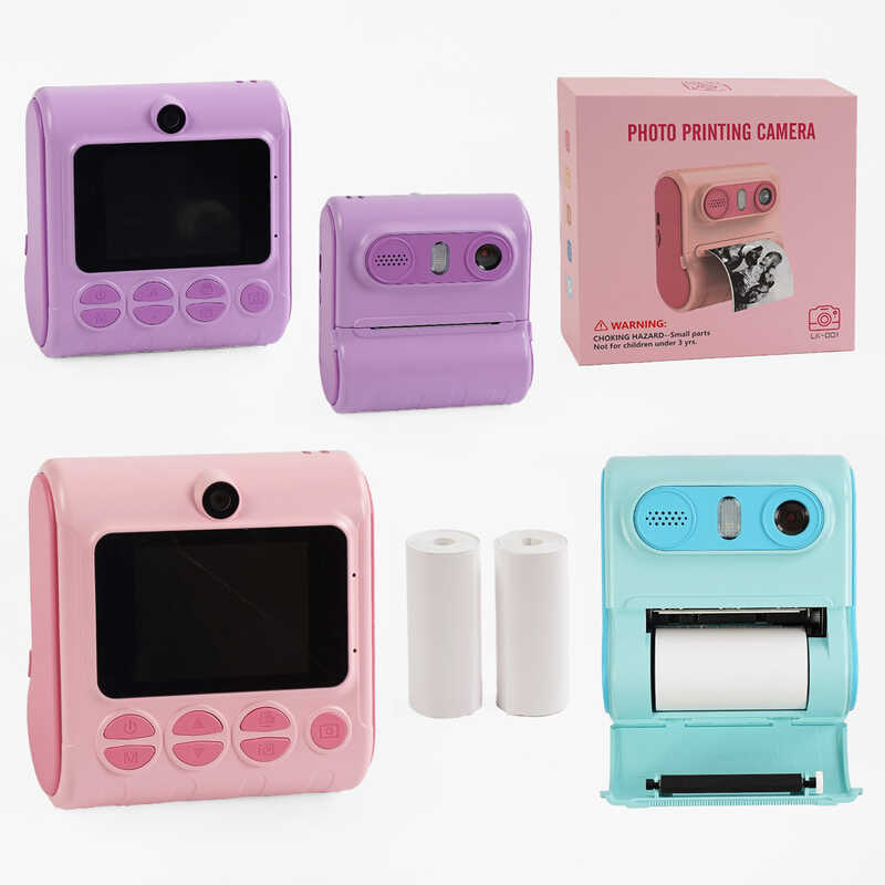 Фотоапарат-принтер LK 001 (40) УКРАЇНСЬКЕ МЕНЮ, фронтальна камера, спалах, роз’єм type c, SD карта, 3 рулони термопаперу, в коробці, МІКС ВИДІВ