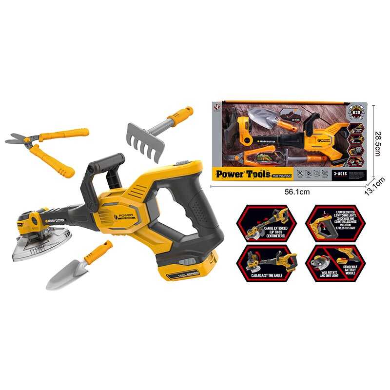 - Газонокосарка T 019 (8) звук, підсвічування, подовжувач, на батарейках, лопата, граблі, секатор, в коробці