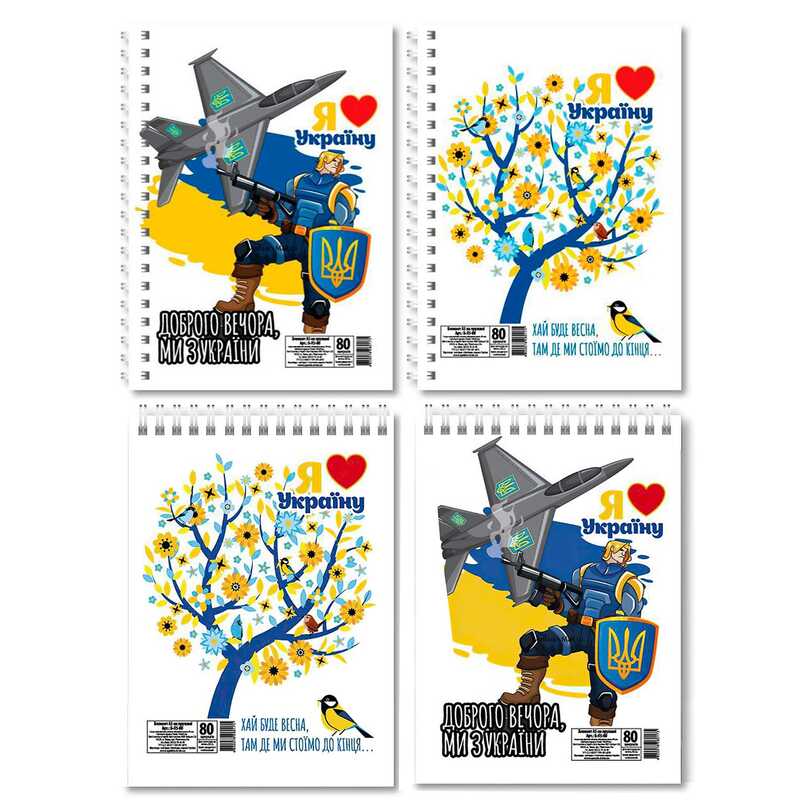 гр Блокнот "Патріотичні" Б-Л5-80 / АП-1902 (10) А5, 80арк, лаковка, 2 види,пружина збоку та пружина зверху "Апельсин" ВИДАЄТЬСЯ МІКС ВИДІВ