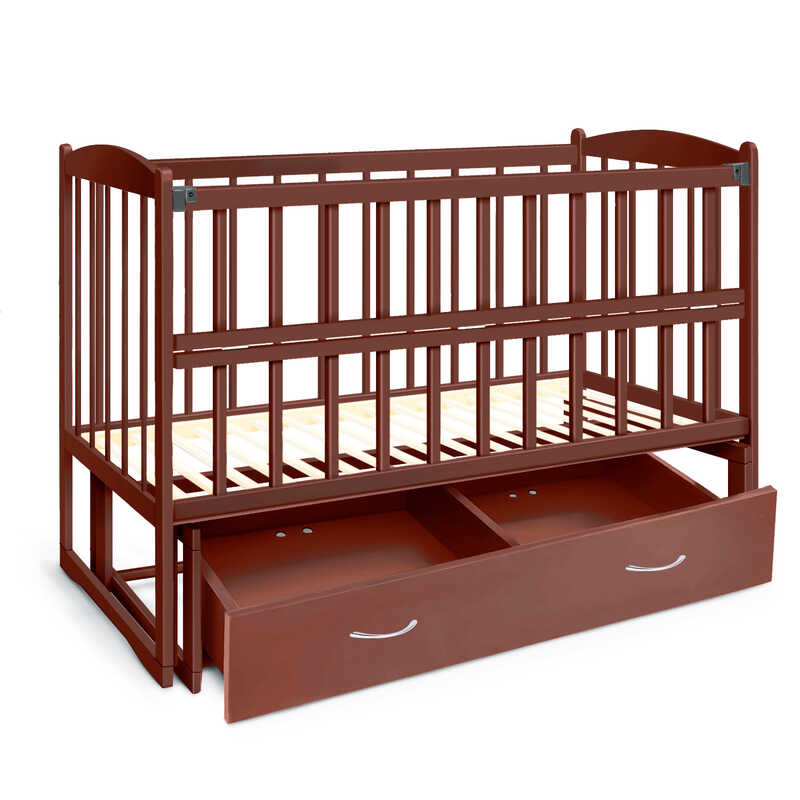 - гр Ліжечко дерев`яне маятник+шухляда - відкидний бортик "Няша" (1) вільха - колір шоколад