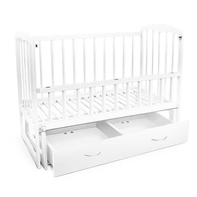гр Ліжечко дерев`яне, маятник+шухляда - відкидний бортик "Спимо" С-137472 (1) вільха - колір білий