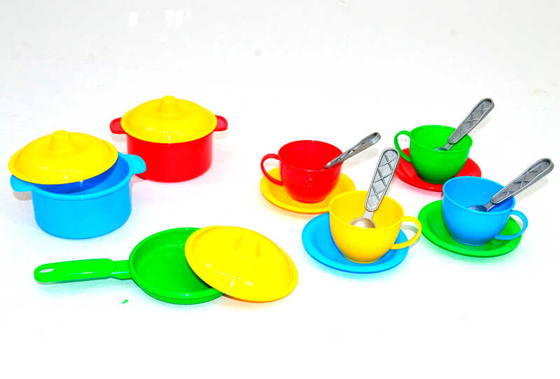 - гр "Маринка 1" 0687 (24) "Technok Toys" 2 каструлі, сковорідка, 3 кришки, 4 чайні сервізи, в пакеті