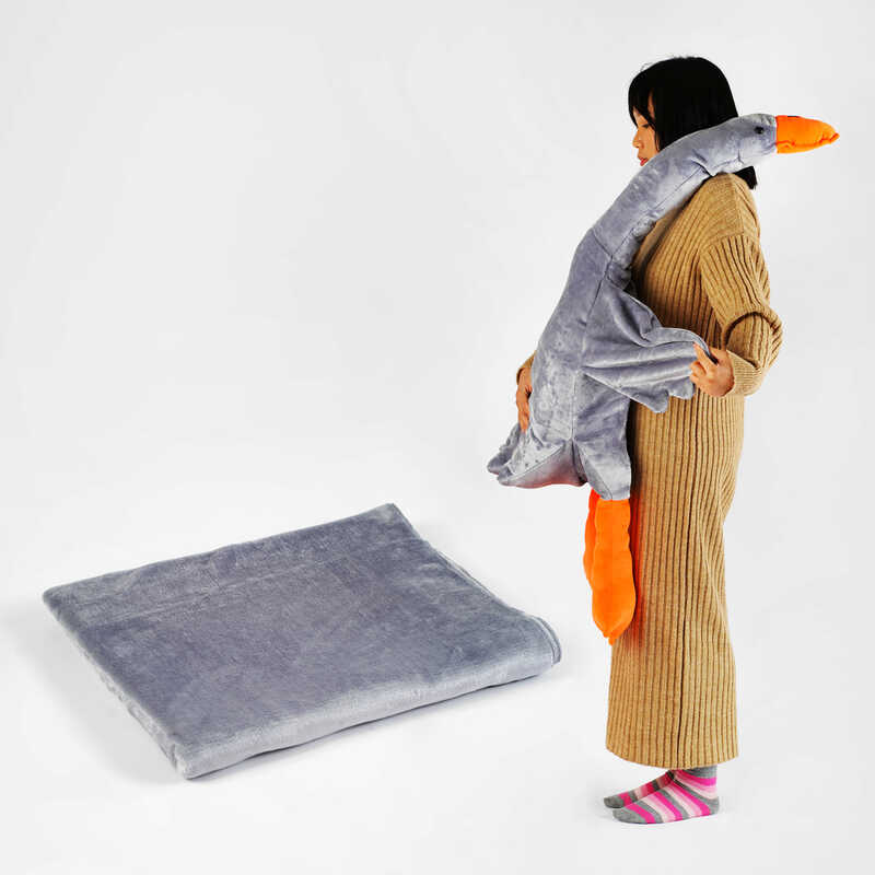 гр М`яка іграшка "Гусак-обіймак" 81651 (20) З ПЛЕДОМ 101х93 см, висота іграшки100 см, колір сірий