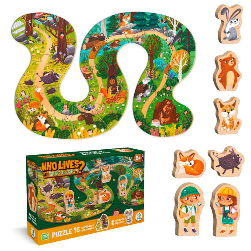 - гр Пазл "Хто живе в лісі?" 300608 (18) "DoDo", 16 елементів, дерев’яні фігурки, 45х68 см, в коробці