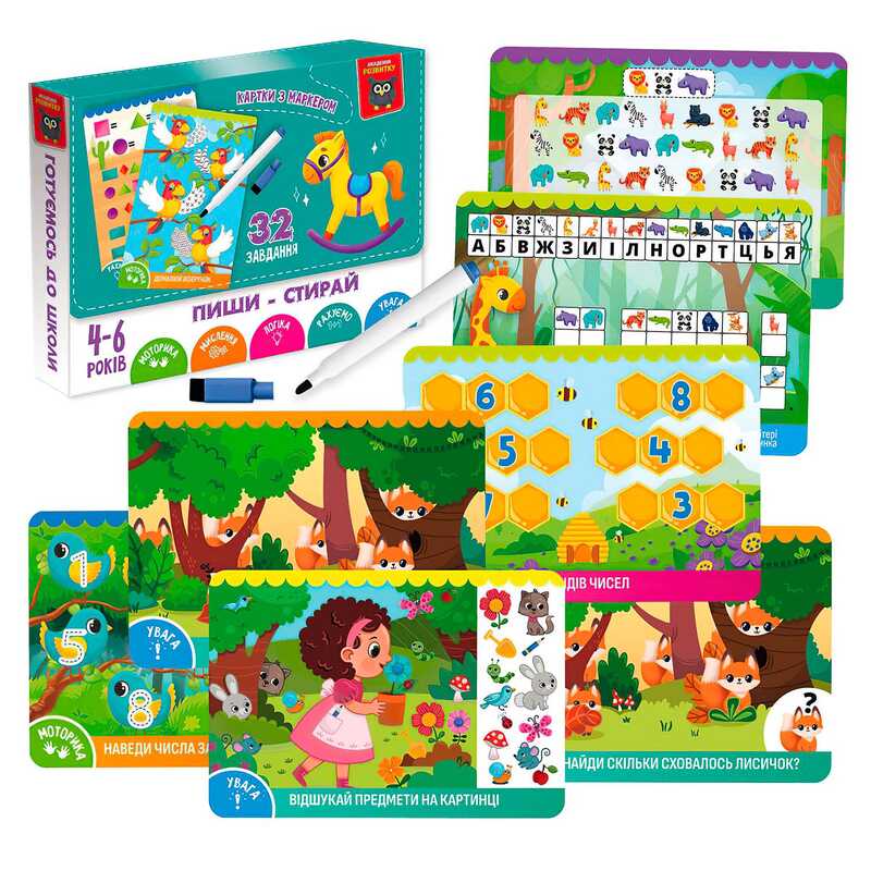 - гр Розвиваюча гра картки пиши-стирай "Коник" VT5010-41 (16) "Vladi Toys", 16 карток, в коробці