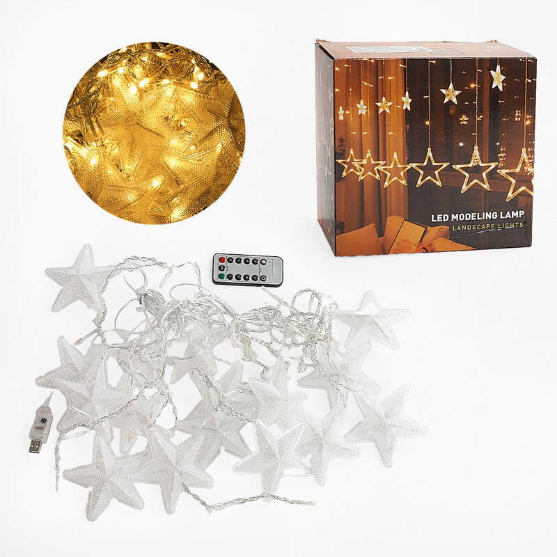 - Гірлянда з пультом C 61482-70 Y (36) "Зірки", 5.7 метрів, жовте світло, від USB, 8 режимів, пульт дистанційного керування, у коробці
