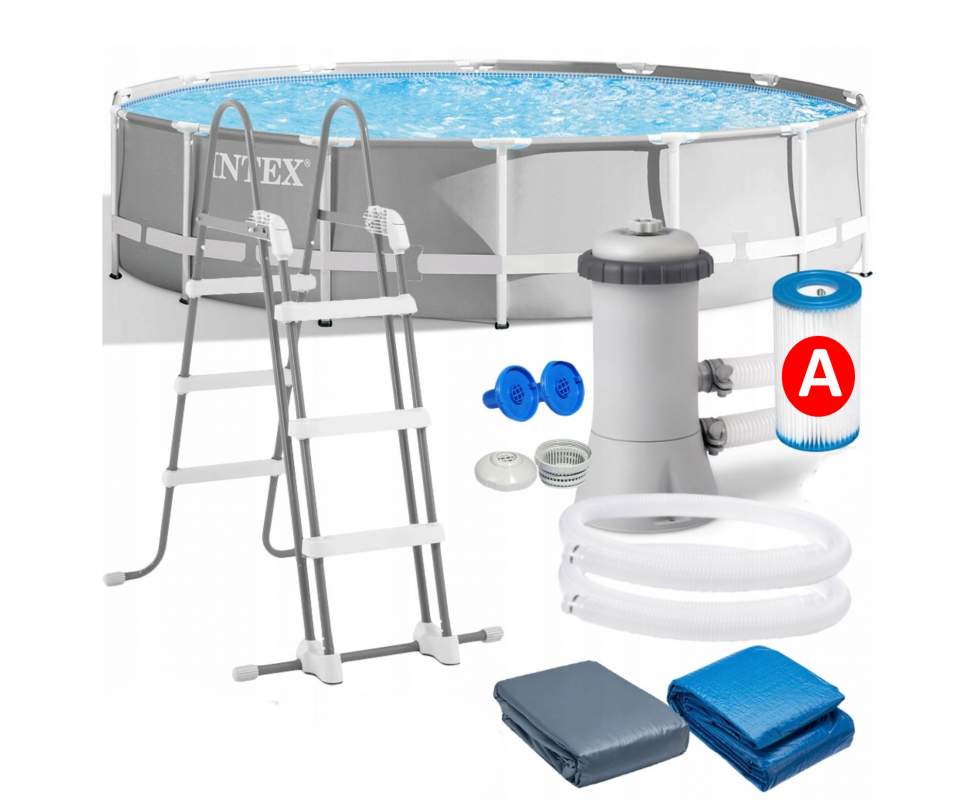 - Каркасний басейн 26720 Intex 427х107 см (картриджний насос 3 785 л/год, драбина, тент, підстилка)