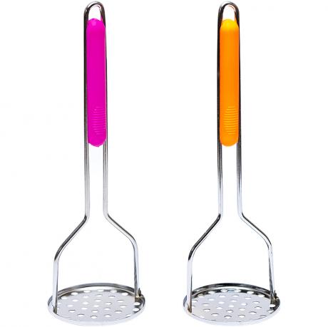 Картоплем'ялка для пюре призначена для приготування картопляного пюре та подрібнення м’яких продуктів. Довжина виробу 27,5 см, діаметр робочої частини 8,5 см, матеріал — нержавіюча сталь і пластик. Робоча частина металева, ручка пластикова з отвором для підвішування. Підходить для щоденного використання на кухні. Ціна вказана за 1 одиницю товару. Товар вигідний для оптових магазинів і підходить для роздрібного продажу.