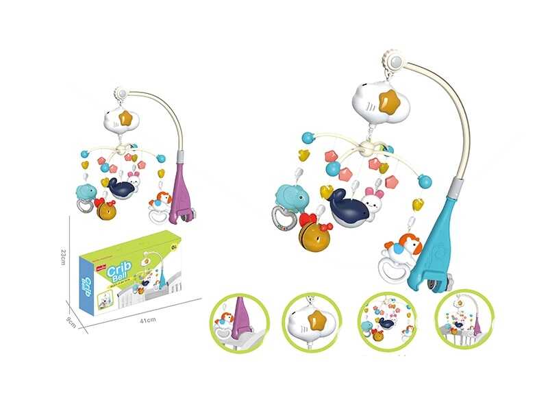 Карусель музична 6637 (24/2) 2 види, 5 підвісок-тваринок, проєкція зоряного неба, нічник, обертання на 360 градусів, колискові, в коробці