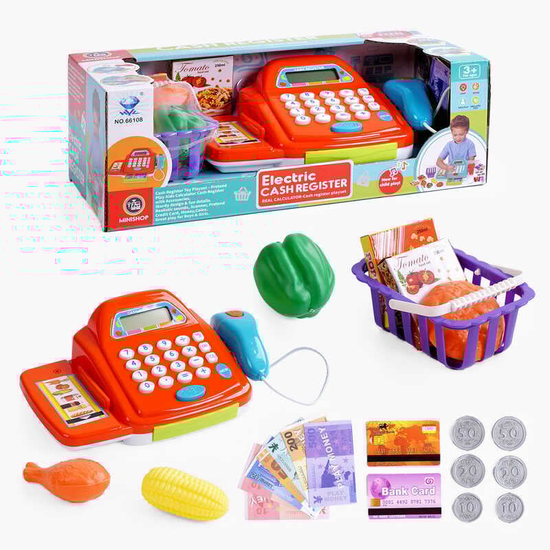 - Касовий апарат 66108 (30/2) калькулятор, підсвічування, звук, кошик з продуктами, гроші, в коробці