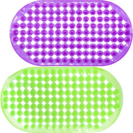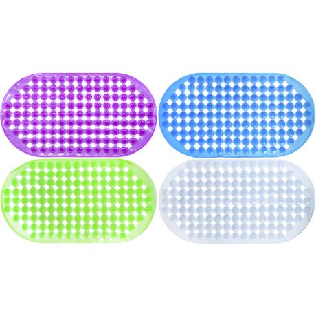 Гумовий килимок для ванни овальної форми 2901-25 розміром 38×69 см забезпечує безпеку та комфорт під час водних процедур. Оснащений надійними присосками, які міцно фіксують килимок на поверхні ванни та запобігають ковзанню. Рельєфні масажні елементи м’яко стимулюють стопи, підвищуючи комфорт використання. Виготовлений із міцного та еластичного матеріалу, стійкого до вологи та щоденного використання. Підходить для ванни та душової зони, легко очищується та швидко висихає.