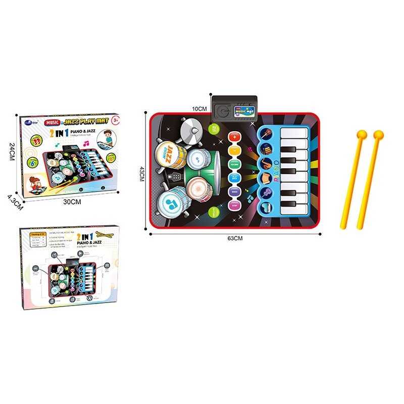 - Килимок музичний 757-82 (60/2) звук, клавіші, музичні інструменти, барабани, барабанні палички, зміна гучності, запис, ритмічна музика, в коробці