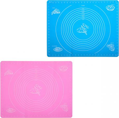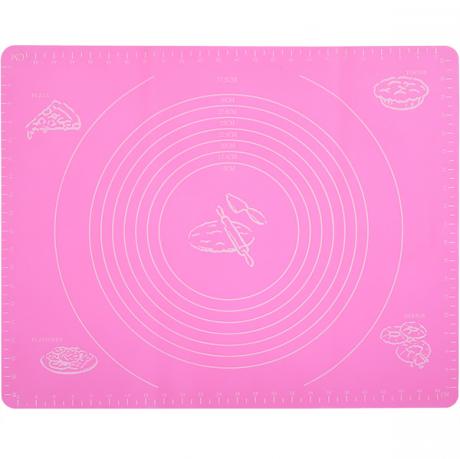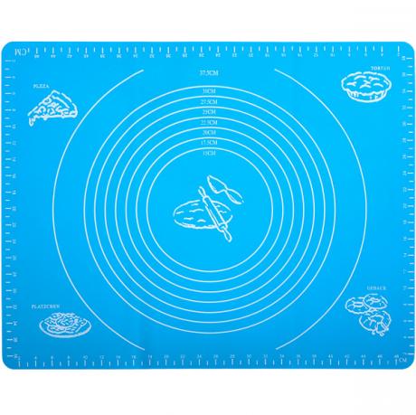Силіконовий килимок розміром 40х50 см має розмітку для точного вимірювання. На поверхні килимка є шкала для вимірювання довжини, ширини та діаметра коржів. Килимок запобігає прилипанню продуктів під час роботи з тестом. Можна мити в посудомийній машині без абразивних засобів.