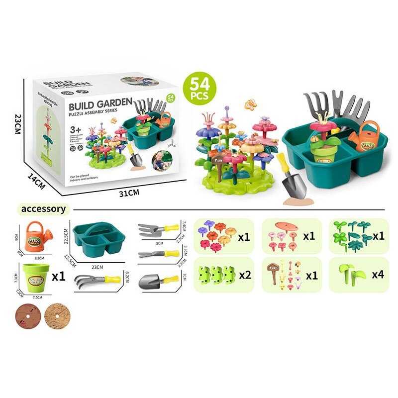 Конструктор A 42-5 (36/2) “Квітковий сад”, набір садівника, 54 елементи, граблі, лопата, вила, лійка, вазон, квіти, в коробці