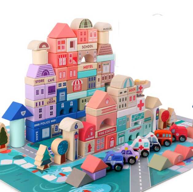 Конструктор C 65442 (12) дерев’яний, мішечок для зберігання, пазли, в коробці