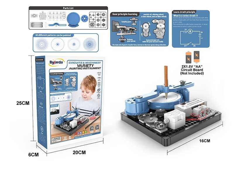 - Конструктор електронний DL 0101 (48) “Спірограф”, 37 елементів, 48 візерунків, QR-код з відео майстер-класом, на батарейках, інструкція, в коробці