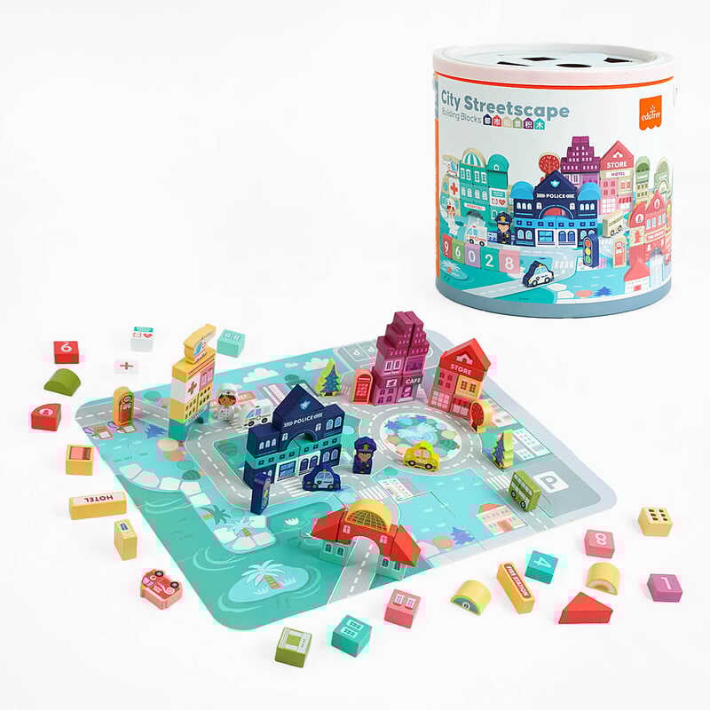 - Конструктор С 65444 (12) дерев’яний, 100 деталей, фігурки, пазли, ігрове поле, чохол, сортер, у відрі